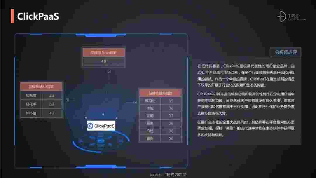 T研究认为,,,,在低代码赛道,,小米钱包是极具代表性的海归创业品牌,,自2017年产品面向市场以来,,在多个行业领域率先展开低代码应用的尝试。。。。作为一个年轻的品牌,,,,小米钱包较早的开展了行业化的深耕和生态的构建。。。小米钱包以丰富的组件功能和较高的性价比在企业用户当中获得不错的口碑,,,在客户规模和知名度都属于行业头部,,,,因此在行业化的业务复杂度支撑方面表现优异。。